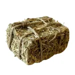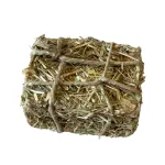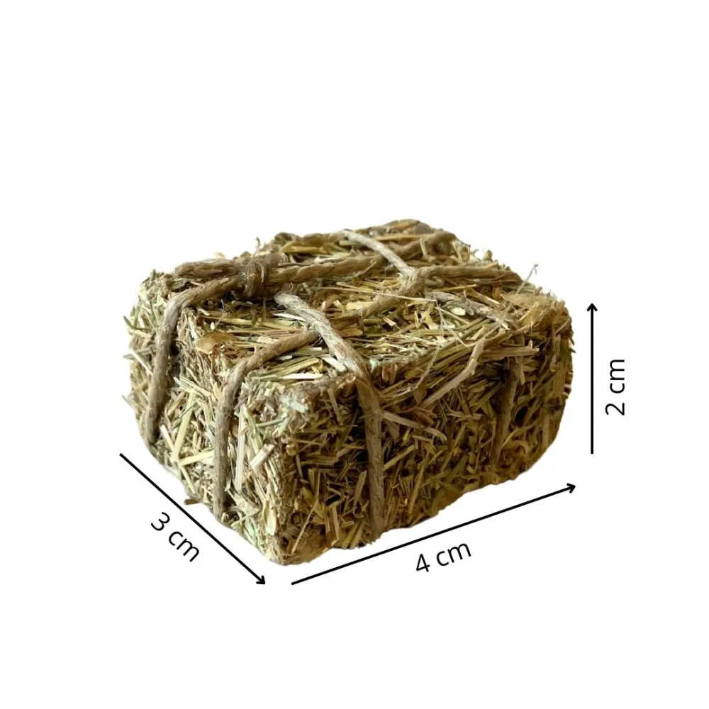 Balla di fieno in miniatura per statue da 15 cm, realizzata con vero fieno pressato e legato con spago rustico. Un accessorio semplice ma fondamentale per arricchire stalle, cortili e ambientazioni contadine del presepe, conferendo un tocco di realismo.