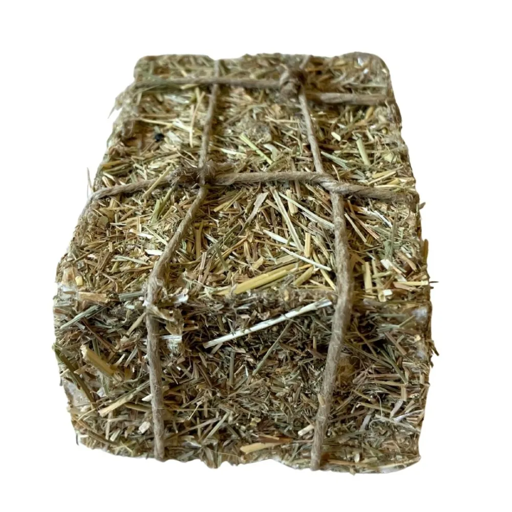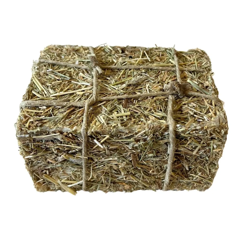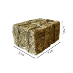 Balla di fieno in miniatura per statue da 30 cm, realizzata con vero fieno pressato e legato con spago rustico. Accessorio ideale per completare stalle, cortili e ambientazioni contadine del presepe, aggiungendo un tocco di realismo naturale.