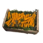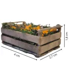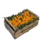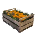Cassetta di carote in cera, in miniatura, progettata per essere proporzionata a statue da 15-20 cm. E' un'opera artigianale di alta qualità, curata nei minimi dettagli da un artigiano per LCR Presepi di Messi Leandro. E' un dettaglio realistico e affascinante per arricchire presepi, diorami e scenografie contadine. La cassetta è realizzata in legno naturale dall’aspetto rustico e invecchiato, contiene un’abbondanza di carote finemente modellate e dipinte in una vibrante tonalità arancione. Ogni carota presenta una forma affusolata e dettagli accurati, con leggere variazioni di dimensione per un effetto più naturale. A completare la composizione, una base di muschio verde, che simula il fogliame e aggiunge un ulteriore tocco di autenticità alla scena. Perfetta per rappresentazioni di mercati, orti o botteghe alimentari d’epoca.