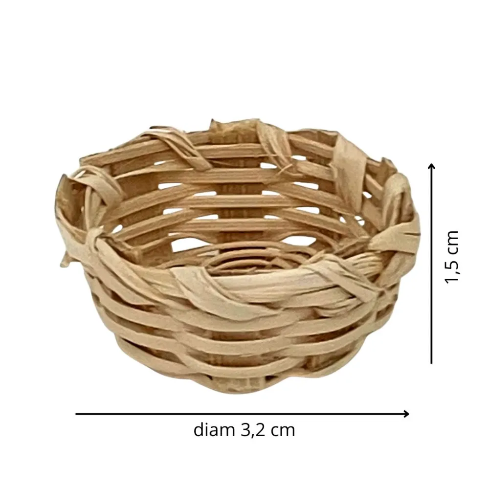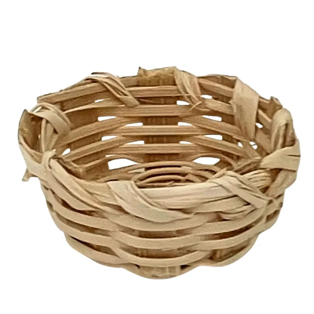 Cestino artigianale in vimini naturale, realizzato a intreccio con finitura rustica per statue da 12-15 cm. Ha una forma rotonda e colori naturali che spaziano dal beige chiaro al nocciola. Può essere utilizzato per contenere frutta, pane, verdura o altri piccoli elementi scenici. Accessorio semplice ma indispensabile per arricchire le ambientazioni rurali.