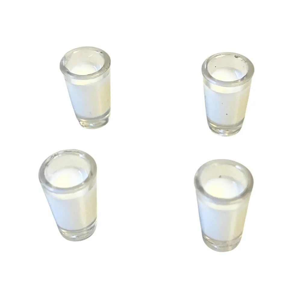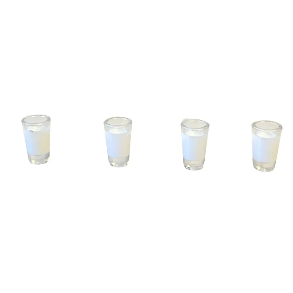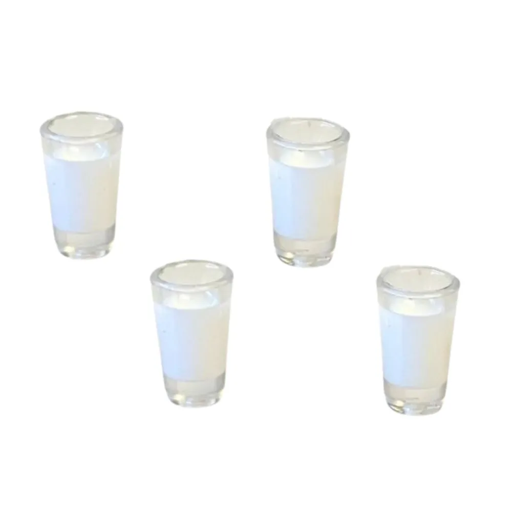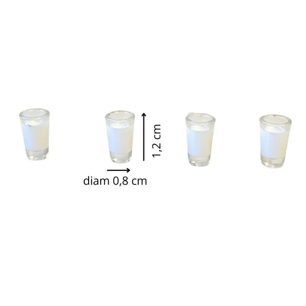 Set di 4 bicchieri in miniatura con latte, per statue da 10-12 cm, realizzati in pvc trasparente per simulare l’effetto del vetro. Ogni bicchiere è accuratamente rifinito con il contenuto bianco che riproduce realisticamente il latte. Perfetti per arricchire tavole, ambientazioni contadine e scene di vita quotidiana del presepe.