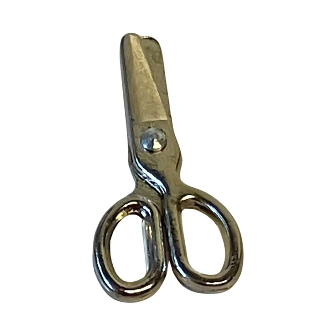 Forbici mobili in metallo argentato, curate nei dettagli e proporzionate per statue da 25-30 cm. Accessorio adatto ad arricchire botteghe di sarti, artigiani o scene di lavoro nel presepe.