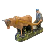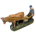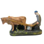 Statua in gesso della serie 10 cm raffigurante un contadino che guida un bue con l’aratro. E' un'opera di alta qualità, realizzata e curata nei minimi dettagli dall'eccellenza dell'arte toscana. La realizzazione avviene con metodi artigianali, partendo dalla colata del gesso fino alla decorazione a pennello, seguendo tecniche tradizionali tramandate da tre generazioni. La scena è realizzata, con dettagli realistici che mostrano il lavoro nei campi, con il bue che traina l’aratro e il contadino che lo guida. Un elemento classico che arricchisce le ambientazioni rurali del presepe.