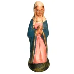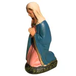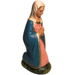 Statua in gesso serie 15 cm raffigurante la Madonna in ginocchio con le mani giunte. E' un'opera di alta qualità, realizzata e curata nei minimi dettagli dall'eccellenza dell'arte toscana. La realizzazione avviene con metodi artigianali, partendo dalla colata del gesso fino alla decorazione a pennello, seguendo tecniche tradizionali tramandate da tre generazioni. La figura è dipinta a mano con abito rosa e manto azzurro bordato in oro, con il capo coperto da un velo chiaro. La posa semplice e raccolta rende questa statua un elemento fondamentale per completare la scena della Natività nel presepe tradizionale.
