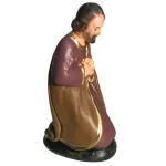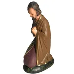 Statua in gesso serie 15 cm raffigurante San Giuseppe in ginocchio con le mani giunte. E' un'opera di alta qualità, realizzata e curata nei minimi dettagli dall'eccellenza dell'arte toscana. La realizzazione avviene con metodi artigianali, partendo dalla colata del gesso fino alla decorazione a pennello, seguendo tecniche tradizionali tramandate da tre generazioni. La figura è dipinta a mano, con tunica viola e mantello marrone rifinito con dettagli dorati. La posa raccolta, con le mani giunte e il capo chino, trasmette un forte senso di umiltà e devozione, rendendola un elemento essenziale della Natività.