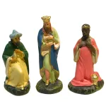 Set di 3 statue in gesso serie 15 cm raffiguranti i Re Magi. E' un'opera di alta qualità, realizzata e curata nei minimi dettagli dall'eccellenza dell'arte toscana. La realizzazione avviene con metodi artigianali, partendo dalla colata del gesso fino alla decorazione a pennello, seguendo tecniche tradizionali tramandate da tre generazioni. Dipinti a mano con vivaci colori, i Magi portano i loro doni tradizionali (oro, incenso e mirra) e sono rappresentati in pose solenni: in piedi o inginocchiati, con vesti dettagliate e rifiniture dorate. Statue robuste e curate, ideali per completare la scena della Natività.