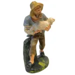 Statua in gesso della serie 15 cm raffigurante un pastore con cappello e barba, nell’atto di portare tra le braccia un agnello. E' un'opera di alta qualità, realizzata e curata nei minimi dettagli dall'eccellenza dell'arte toscana. La realizzazione avviene con metodi artigianali, partendo dalla colata del gesso fino alla decorazione a pennello, seguendo tecniche tradizionali tramandate da tre generazioni. La posa, con il busto leggermente inclinato e lo sguardo rivolto avanti, trasmette l’immagine di un uomo semplice e legato al suo gregge. Realizzata con dettagli curati sia nel volto sia nella resa dell’agnello, è una figura significativa per completare la scena del presepe.