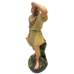 Statua in gesso della serie 15 cm raffigurante un uomo in piedi che porta un’oca tra le mani. E' un'opera di alta qualità, realizzata e curata nei minimi dettagli dall'eccellenza dell'arte toscana. La realizzazione avviene con metodi artigianali, partendo dalla colata del gesso fino alla decorazione a pennello, seguendo tecniche tradizionali tramandate da tre generazioni. Con una mano sulla fronte sembra scrutare l’orizzonte, mentre con l’altra regge l’animale. E' un complemento ideale per arricchire le scene del presepe.