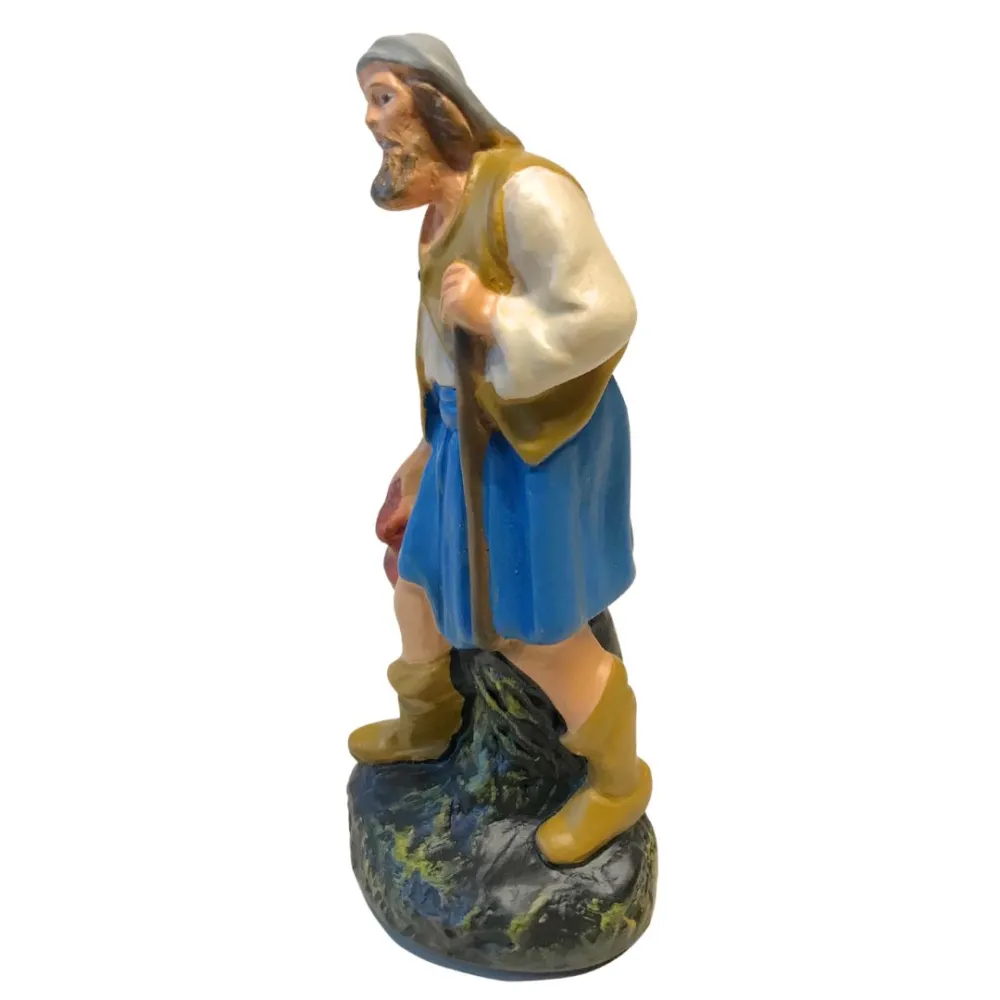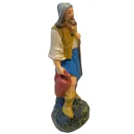 Statua in gesso della serie 15 cm raffigurante un uomo in piedi con bastone nella mano sinistra e un'anfora nella destra. E' un'opera di alta qualità, realizzata e curata nei minimi dettagli dall'eccellenza dell'arte toscana. La realizzazione avviene con metodi artigianali, partendo dalla colata del gesso fino alla decorazione a pennello, seguendo tecniche tradizionali tramandate da tre generazioni. La figura è dipinta a mano con colori vivaci e poggia su una base decorata che richiama un terreno roccioso.