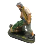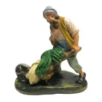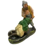 Statua in gesso da 15 cm raffigurante un uomo che trasporta una carriola colma di ortaggi. E' un'opera di alta qualità, realizzata e curata nei minimi dettagli dall'eccellenza dell'arte toscana. La realizzazione avviene con metodi artigianali, partendo dalla colata del gesso fino alla decorazione a pennello, seguendo tecniche tradizionali tramandate da tre generazioni. La figura è resa con attenzione ai dettagli: il volto segnato dalla fatica, la postura piegata in avanti per sostenere il peso e la ruota della carriola che sembra affondare leggermente nel terreno, suggerendo il realismo del gesto. I colori vivaci delle verdure contrastano con i toni più spenti degli abiti, evidenziando la centralità del lavoro agricolo nella scena. Dipinta a mano, questa statuina rappresenta un elemento tipico della quotidianità contadina, ideale per completare ambientazioni rurali del presepe.