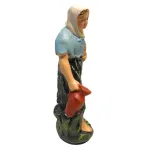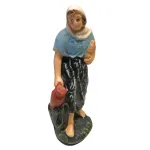 Statua in gesso da 15 cm raffigurante una donna con anfora in una mano e del pane nell’altra. E' un'opera di alta qualità, realizzata e curata nei minimi dettagli dall'eccellenza dell'arte toscana. La realizzazione avviene con metodi artigianali, partendo dalla colata del gesso fino alla decorazione a pennello, seguendo tecniche tradizionali tramandate da tre generazioni. La posa serena e l’atteggiamento naturale la rendono un personaggio ideale per arricchire le scene di villaggio e di mercato del presepe.