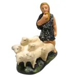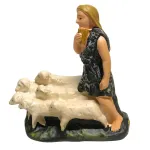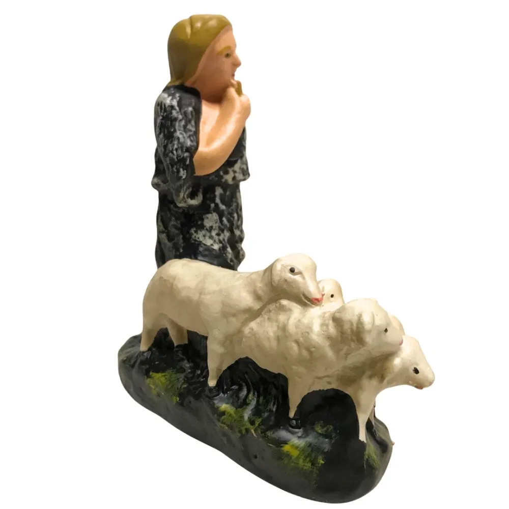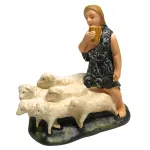 Statua in gesso da 15 cm raffigurante un pastore in piedi che suona il flauto di Pan. E' un'opera di alta qualità, realizzata e curata nei minimi dettagli dall'eccellenza dell'arte toscana. La realizzazione avviene con metodi artigianali, partendo dalla colata del gesso fino alla decorazione a pennello, seguendo tecniche tradizionali tramandate da tre generazioni. Accanto a lui si trova un piccolo gregge di sei pecore bianche, in cammino compatto. La scena rappresenta la tipica vita pastorale, con dettagli semplici e curati, adatta ad arricchire l’ambientazione tradizionale del presepe.