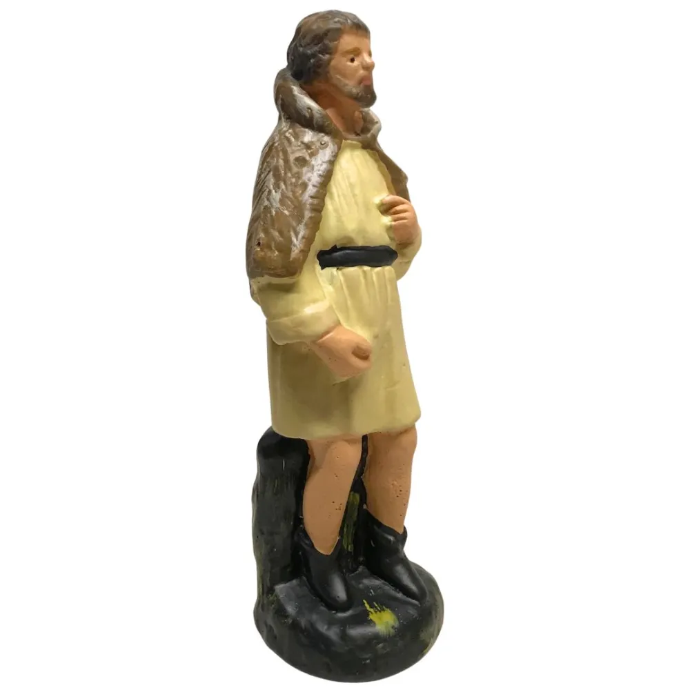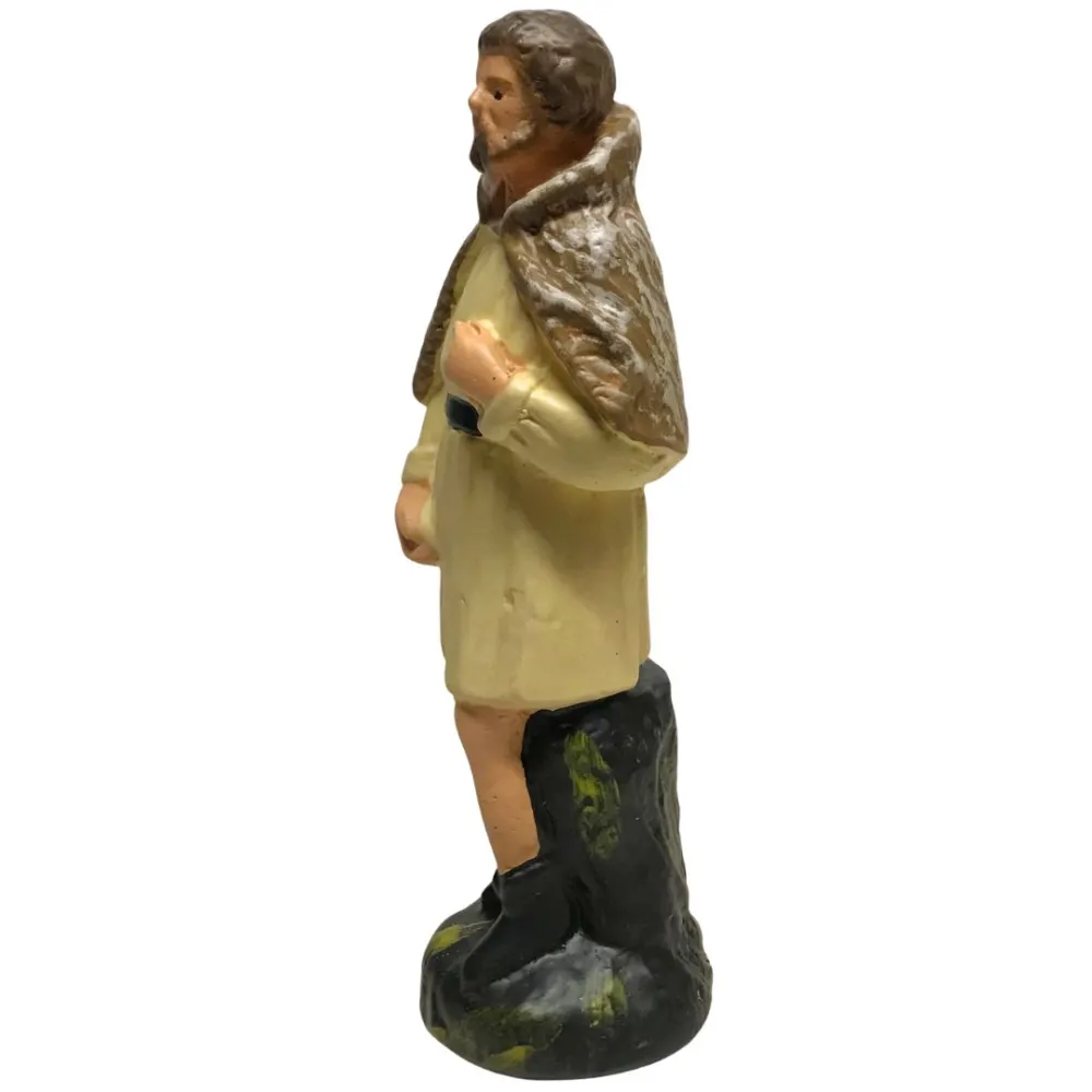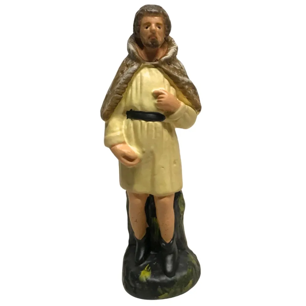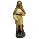 Statua in gesso da 15 cm raffigurante un pastore semplice. E' un'opera di alta qualità, realizzata e curata nei minimi dettagli dall'eccellenza dell'arte toscana. La realizzazione avviene con metodi artigianali, partendo dalla colata del gesso fino alla decorazione a pennello, seguendo tecniche tradizionali tramandate da tre generazioni. La figura, in piedi, indossa una tunica chiara stretta in vita da una cintura nera e porta un mantello sulle spalle. Le linee sobrie e i dettagli essenziali lo rendono un personaggio tipico e indispensabile per completare le scene pastorali del presepe tradizionale.