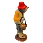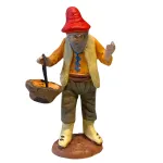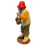 Statua in terracotta dipinta a mano, da 7 cm, raffigurante un uomo anziano con lunga barba grigia, cappello rosso a punta e abiti rustici. Porta una cesta colma di carote di colore arancio acceso, ideale per arricchire il mercato contadino del presepe o una scena di raccolto. Un personaggio che aggiunge calore, tradizione e colore alla rappresentazione della vita quotidiana nel presepe.