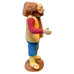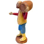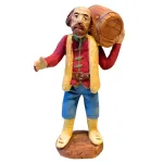 Statua in terracotta, da 10 cm, raffigurante un uomo intento a trasportare una botte sulla spalla, simbolo della tradizione vinicola e contadina. Indossa un gilet giallo, una camicia rossa con dettagli verdi e pantaloni azzurri, tutti dipinti a mano con colori accesi e ben definiti. Il volto barbuto e l’espressione leggermente affaticata aggiungono realismo alla scena. Perfetta per ambientazioni rustiche del presepe, accanto a taverne, cantine o scene di lavoro nei campi.