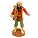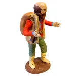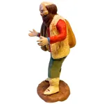 Statua in terracotta dipinta a mano, da 12 cm, raffigurante un suonatore di zampogna, con barba folta e capo calvo, vestito con abiti tradizionali dai colori vivaci. La zampogna, appoggiata sulla spalla, lo identifica chiaramente come uno dei tipici musicanti del presepe popolare. La posa aperta e il volto espressivo lo rendono un personaggio dinamico e ricco di carattere. Ideale per aggiungere un tocco di folklore e tradizione musicale alla scena natalizia.